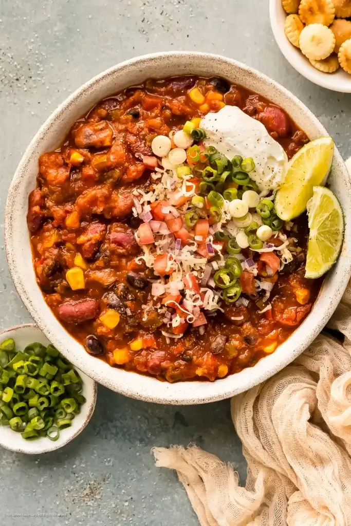 E fehérjében gazdag vegetáriánus étel – valójában egy Tex Mex stílusú zöldség ragu – alapja fekete és fehér bab valamint az aranysárga kukorica. Voltaképp bármilyen babot használtunk hozzá, sőt konzerv vagy főt lencsét is választhatunk, hasonló mennyiségben. Ha lencsével csináljuk, azt a kukoricával együtt a végén tegyük az ételbe, és csak az utolsó 10 percben főzzük lassú tűzön.