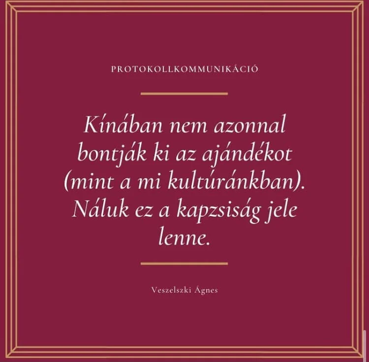 Kiegészítésként pedig megosztja velünk: ‒ Egészen sajátos tanácsokat is szoktam hozni, amelyeket illembonbonoknak nevezek – ezek inkább érdekességek, mint a mindennapi életünkben feltétlenül hasznos tanácsok. Például Thaiföldön tiszteletben kell tartani a bankjegyeket, mert az uralkodó arcképe szerepel rajtuk; Olaszországban nem illik egy templom lépcsőjén enni; Kínában a 8 a legszerencsésebb szám, bőség és szerencse kapcsolódik hozzá.